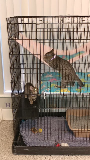 Let's hope those kittens will be adopted soon. It's tough seeing them in a cage even if they look like they're having fun.